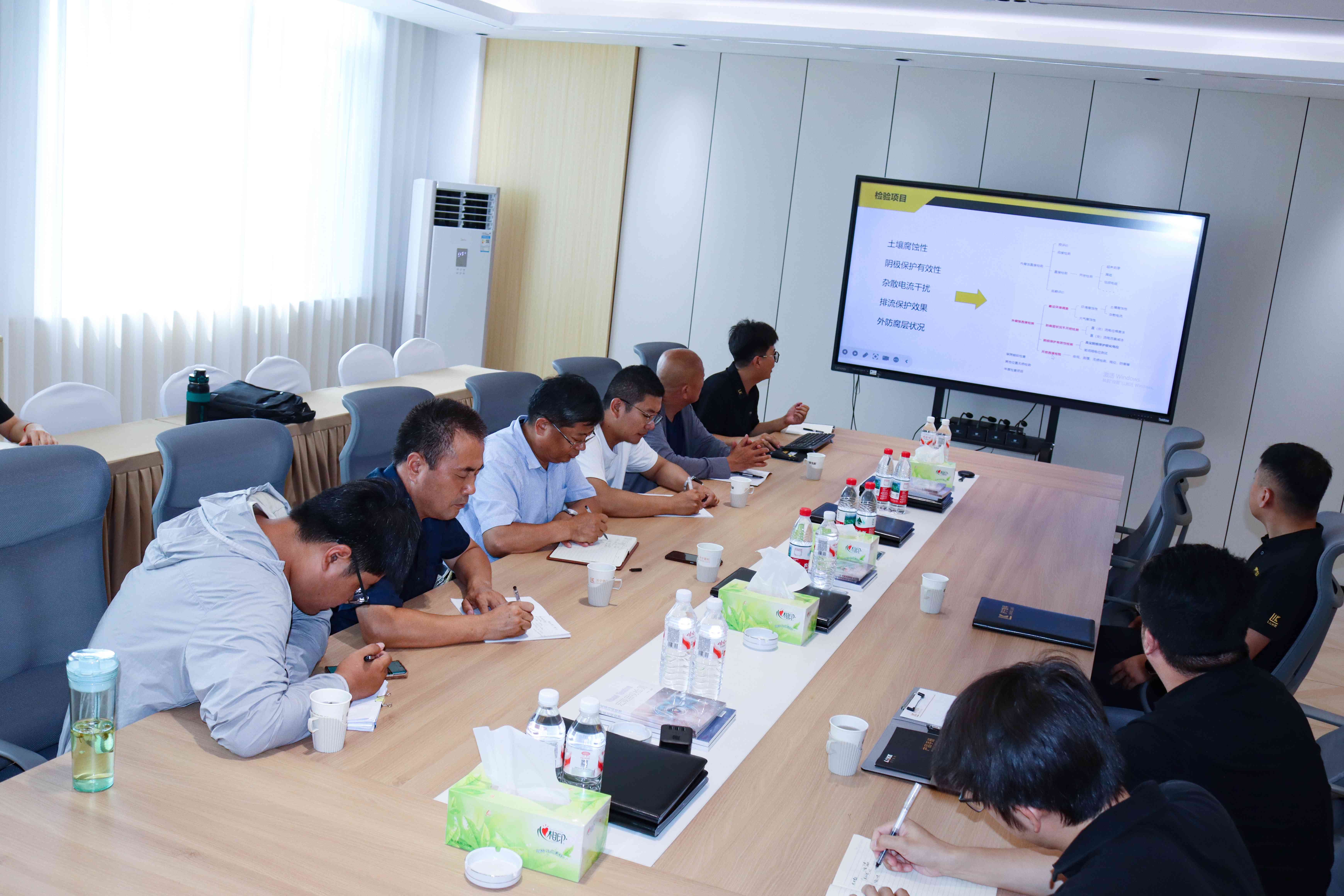 随后各位领导在薛总的带领下,在会议室共同商讨埋地管道的相关事宜,会议结束后到埋地管道实训基地进行操作演示。