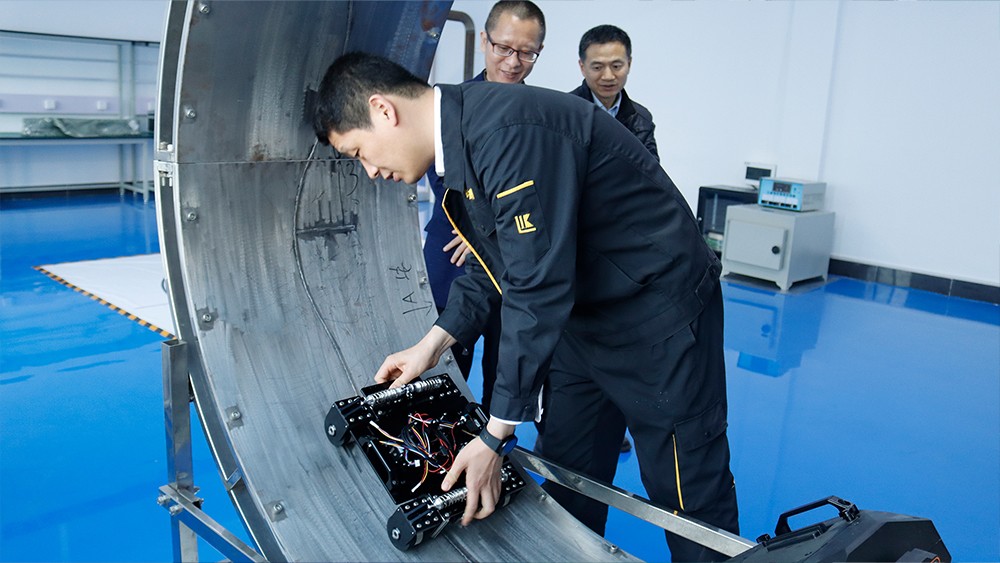 2024年4月17日-18日,上海材料研究所有限公司无损检测事业部蒋建生主任、王森副主任,销售市场部滕健主任一行受邀莅临我司考察指导,先后参观了我公司埋地管道实训基地、无尘车间、研发中心实验室等,对我公司自主研发的无线式磁粉探伤仪、管道磁粉探伤仪、角焊缝磁粉探伤仪、腐蚀测厚机器人、ACFM交流电磁场检测仪等设备进行性能测试,均达到预期效果,对我公司研发、生产及售后能力给予高度评价。
