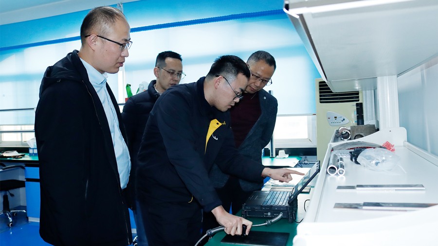 2024年1月10日,广东省特种设备检测研究院顺德检测院一行莅临我司参观指导,先后参观了我公司无尘车间、实验室等,对我公司自主研发的无线式磁粉探伤仪、管道磁粉探伤仪、角焊缝磁粉探伤仪、腐蚀测厚机器人及联合中国石油大学(华东)共同研发的ACFM交流电磁场检测仪等设备进行性能测试,均达到预期效果,并对我公司研发、生产及售后能力给予高度肯定。