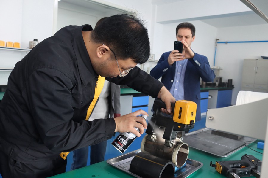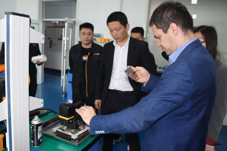 Denis先生先后参观了我公司无尘车间、实验室等,对我公司自主研发的无线式磁粉探伤仪、管道磁粉探伤仪、角焊缝磁粉探伤仪等设备进行性能测试,均达到预期效果,并对我公司研发、生产及售后能力给予高度肯定。